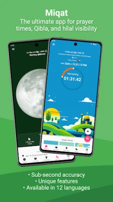 Miqat: Prayer Times, Qibla آپ کی نماز کے اوقات، قبلہ کی سمت اور ہلال کی رویت کے لیے ایک جامع ایپ ہے۔ یہ اعلیٰ درستگی کے حسابات، جدید فیچرز اور استعمال میں آسانی فراہم کرتا ہے جو اسے منفرد بناتے ہیں۔