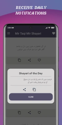 میر تقی میر کے کلام کی اس حسین دنیا کو اپنے احباب سے بانٹنا اب بے حد آسان ہے۔ "Mir Taqi Mir Shayari" آپ کو یہ سہولت فراہم کرتی ہے کہ آپ ان قیمتی اشعار کو سوشل میڈیا، پیغام رسانی کی ایپس یا اپنے آلے میں محفوظ کر کے آسانی سے پھیلا سکیں۔ اور سب سے اہم بات یہ کہ، اگر آپ انٹرنیٹ سے منسلک نہیں ہیں تو بھی فکر کرنے کی ضرورت نہیں۔ یہ ایپلی کیشن آف لائن بھی مکمل طور پر فعال ہے، تاکہ آپ کسی بھی وقت، کسی بھی جگہ میر کی شاعری کا لطف اٹھا سکیں۔ "Mir Taqi Mir Shayari" میر صاحب کو خراج تحسین پیش کرنے اور اردو ادب کے شاندار ورثے کو فروغ دینے کا ایک منفرد ذریعہ ہے۔