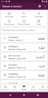 کلامِ پاک کی گہرائیوں تک رسائی کے لیے "تفسیرِ عثمانی" میں جامع تلاشی کی سہولت موجود ہے، جس کے ذریعے آپ قرآن، ترجمے اور تفسیر میں کسی بھی لفظ یا موضوع کو آسانی سے تلاش کر سکتے ہیں۔ کسی بھی آیت یا رکوع تک فوری رسائی کے لیے تیز جمپ فنکشنز، اور اپنی پسندیدہ آیات کو لامحدود بک مارکس کے ساتھ محفوظ کرنے کی صلاحیت آپ کے مطالعے کو منظم بناتی ہے۔ آپ کسی بھی آیت کو اس کے ترجمے یا تفسیر کے ساتھ یا بغیر اپنے دوستوں اور خاندان کے ساتھ باآسانی شیئر کر سکتے ہیں۔ یہ ایپ آپ کو آیات اور رکوعات کی معلومات بھی فراہم کرتی ہے، جو اسے قرآن فہمی کے لیے ایک مکمل اور قابل اعتماد رہنما بناتی ہے۔